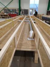 På vores træelement-fabrik i Grindsted har vi indrettet os optimalt til at samle de præfabrikerede vægelementer og tagkassetter, som du har brug for til at bygge et bæredygtigt Secher System råhus.